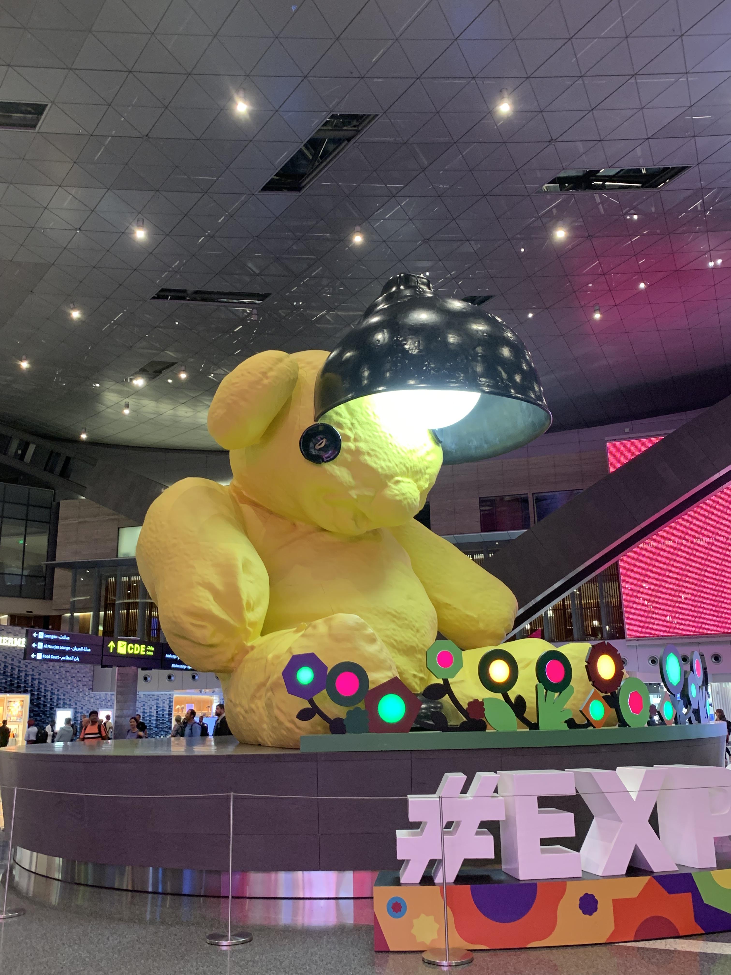 도하 공항의 상징인 곰돌이 사진 먼저 찍어주고