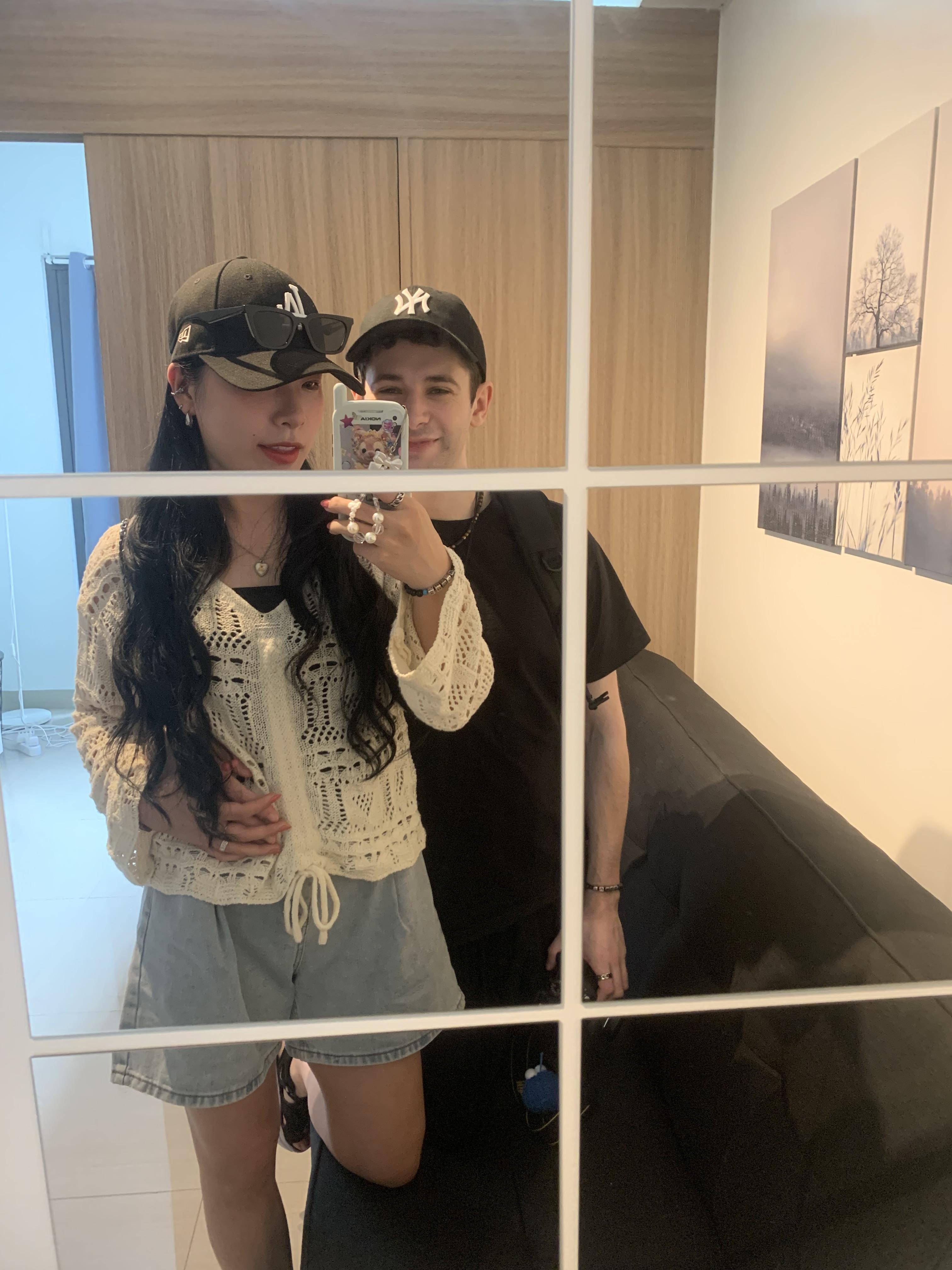 덕분에 전 나갈 때 차고 나갔던 목걸이(짝꿍과 함께 거울에서 찍은 사진을 보시며 목걸이를 하고 있어요,,,,)가 사라졌어요,,,