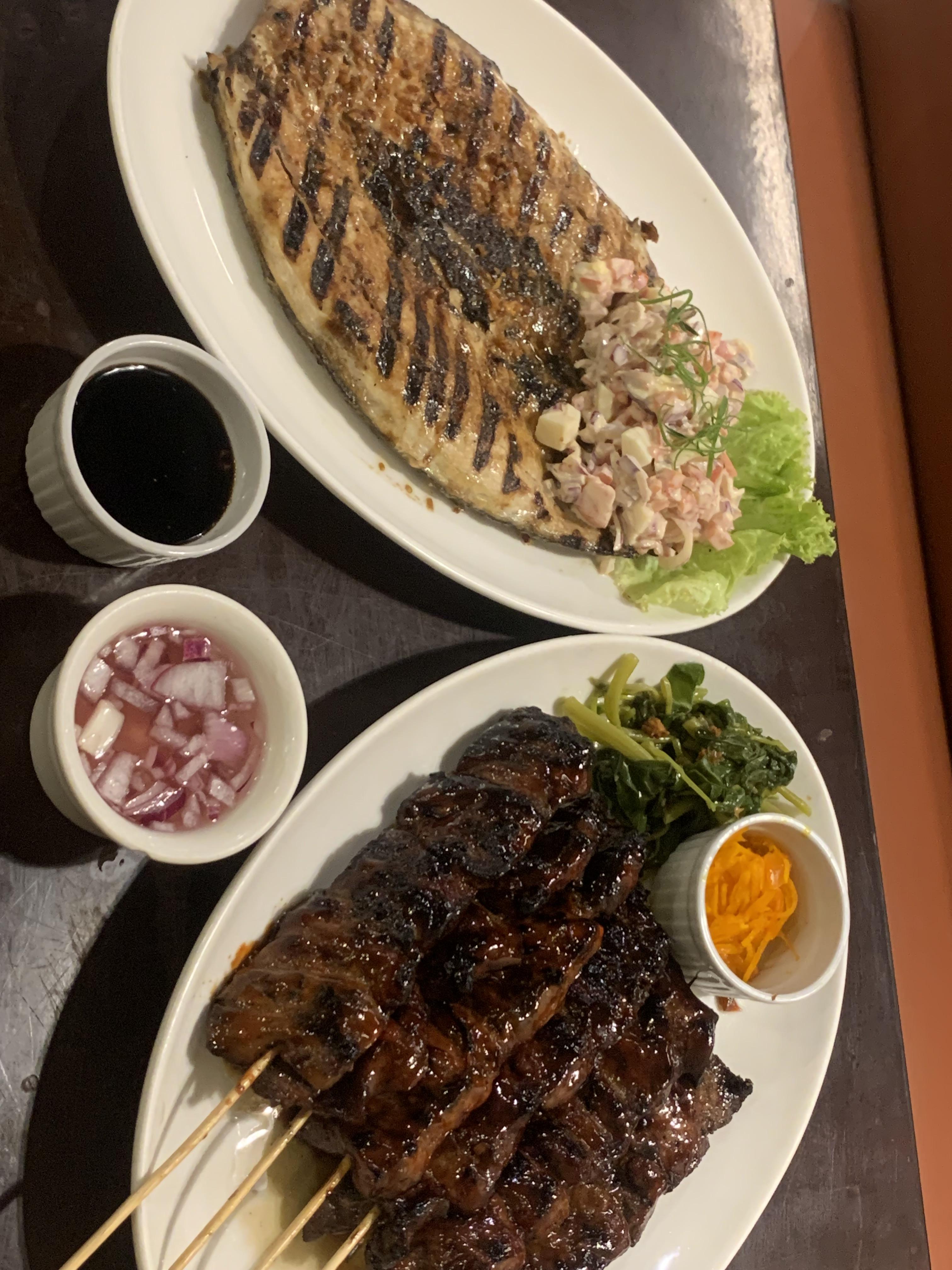 돼지고기 꼬치구이와 생선구이입니다!! ㅎㅎ